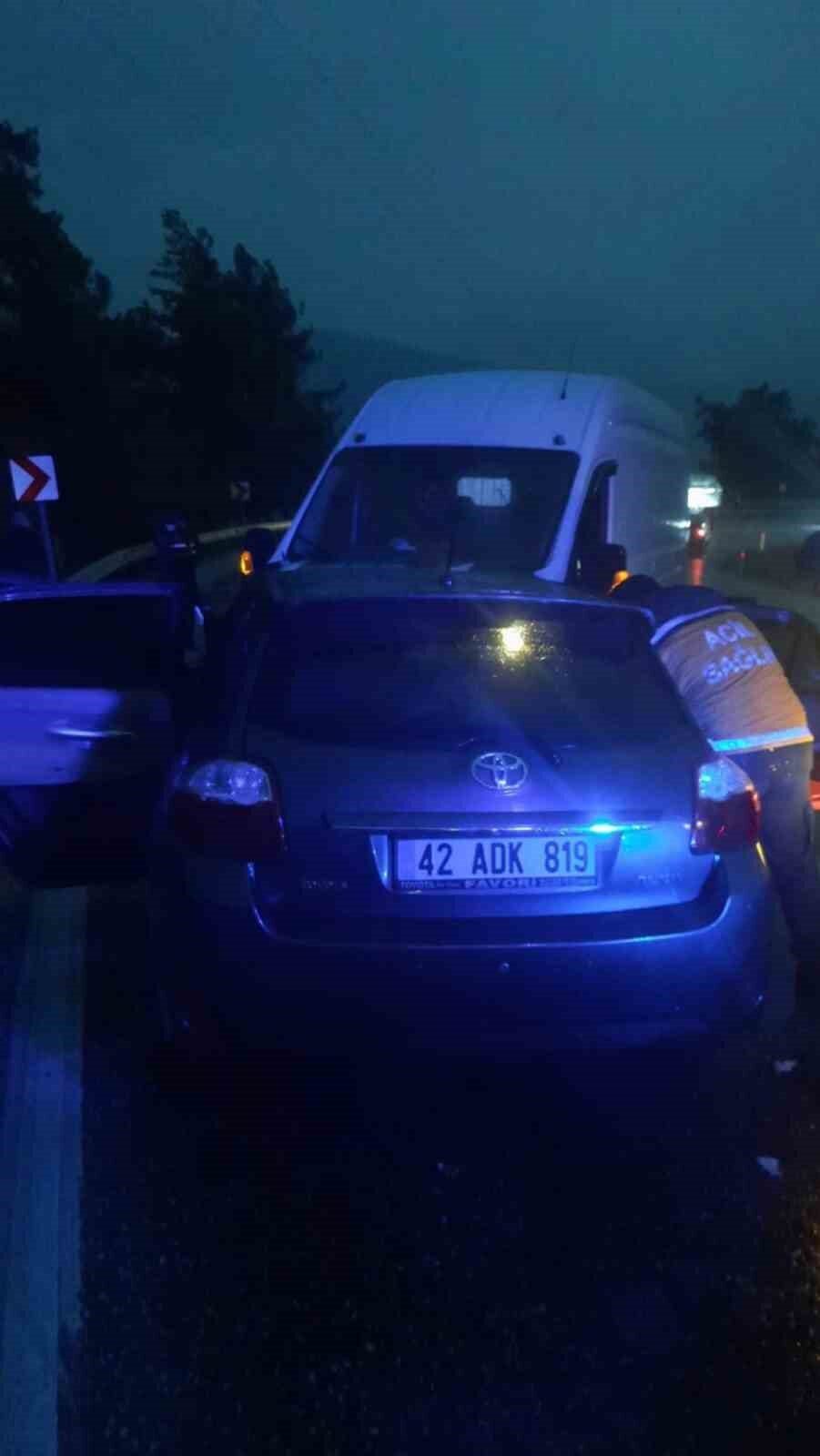 Kaza, bugün öğleden sonra 16.30 civarında Akseki-Manavgat karayolu üzerindeki Manayıt mevkiinde gerçekleşti. Harun Reşit B. yönetimindeki 42 ADK 819 plakalı otomobil, Akseki’den Manavgat’a doğru ilerlerken, araç yolun kayganlaşması nedeniyle kontrolünü kaybederek şeridinden çıktı. Kontrolden çıkan otomobil, karşı yönden gelen Muhammet E. idaresindeki 07 ANU 296 plakalı hafif ticari araca çarptı.