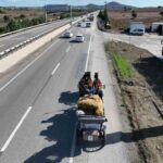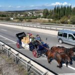 Alman Friedensglocken (Barış Çanları) derneği üyeleri, yola çıktıkları 2 bin 300 kilometrelik mesafeyi geride bıraktı. Mayıs ayında Berlin’de büyük bir törenle başlayan bu macera, Aralık’ın 25’inde Kudüs’te sona ermesi hedefleniyor. Aktivistlerin, özellikle İsrail’in Filistin’e karşı uyguladığı zalim politikalar üzerine dikkat çekmek için düzenledikleri bu barış yürüyüşü pek çok zorlukla dolu geçti. Türkiye’ye ulaştıklarında Bursa’da dinlenme fırsatı bulan ekip, sabahın erken saatlerinde tekrar yola koyulmak üzere hazırlandı. At arabalarının üzerinde, İkinci Dünya Savaşı’ndan kalma askeri hurdalardan yapılan bir çanda “Herkesle barışı kovalayın” yazısı dikkat çekti.