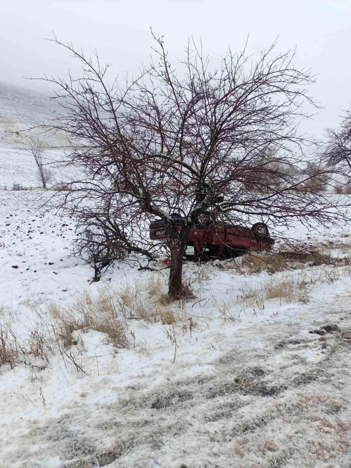 Alaca’da kar ve buzlanma nedeniyle otomobilin ağaca çarpıp takla attığı kazada 2 çocukla 4 kişi yaralandı.