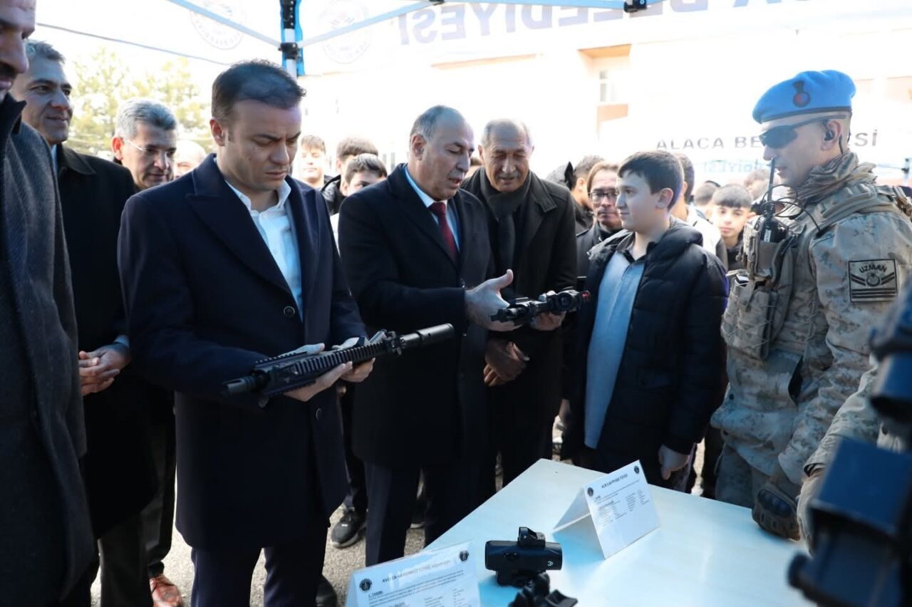 Alaca İmam Hatip Ortaokulu’nda yapılan bu anlamlı etkinlikte, öğrenciler Türkiye’nin teknoloji ve savunma sanayiindeki ilerlemelerini öğrendiler. Protokol üyeleri, öğrenci projelerini ve sergiyi beğeniyle karşıladı. İlçe Jandarma Komutanlığı tarafından kurulan stantta yerli ve milli silahlar ile teçhizatlar, katılımcılar tarafından ilgiyle incelendi. Özellikle, milli imkanlarla üretilen silahlar büyük ilgi topladı.