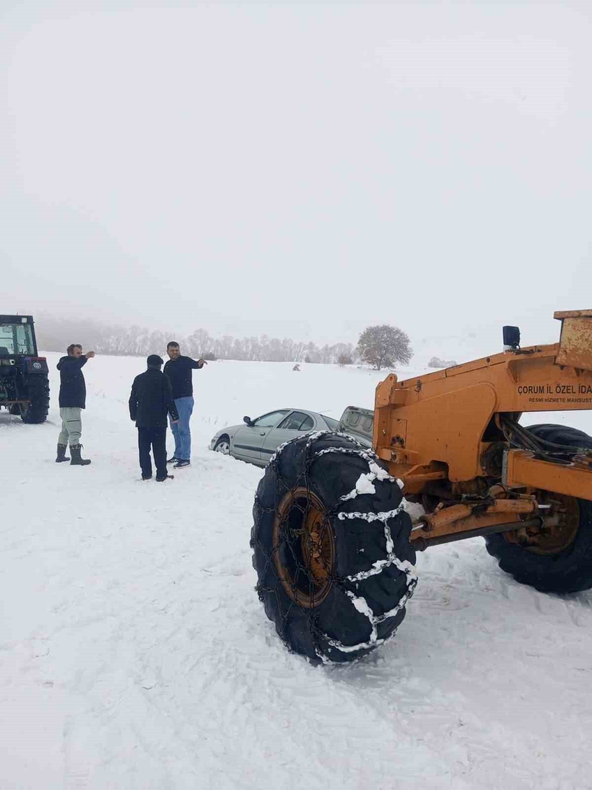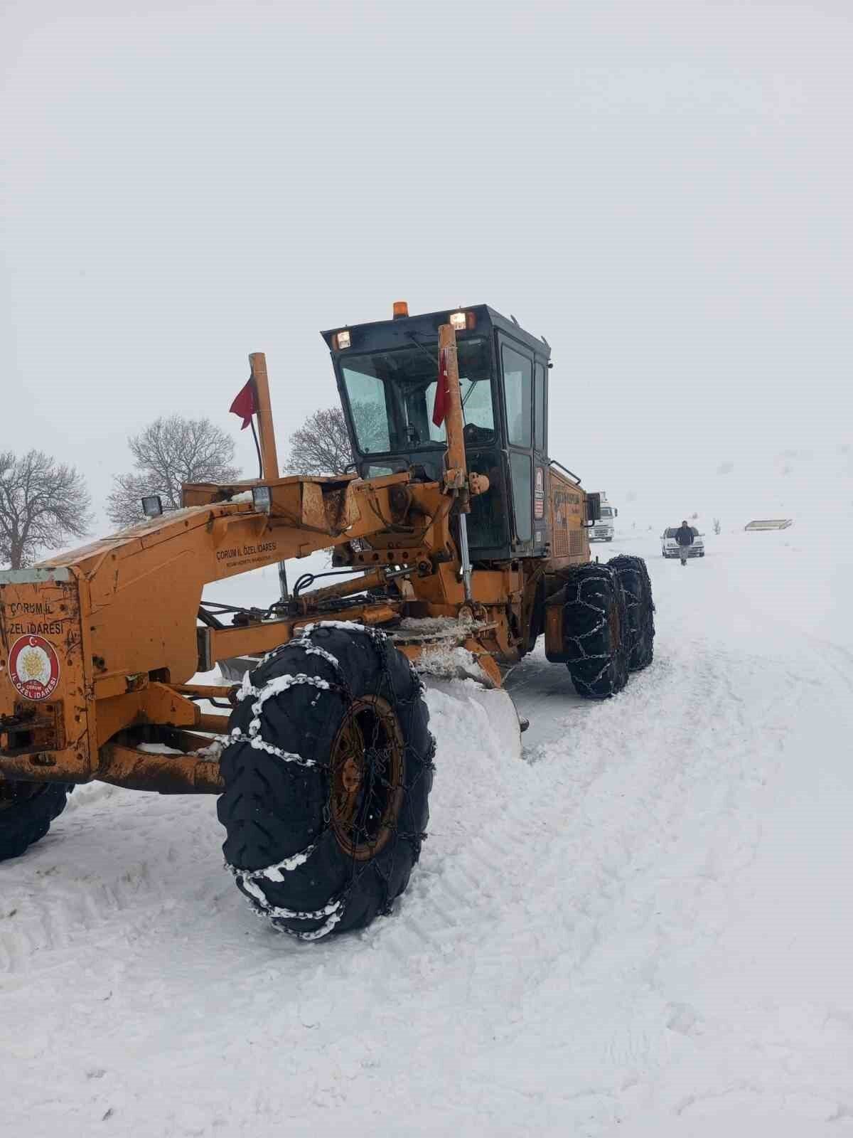 Çorum’un Alaca ilçesinde yoğun kar yağışı sebebiyle araçlarıyla yolda mahsur kalan vatandaşlar, Çorum İl Özel İdaresi ekiplerinin çalışmasıyla kurtarıldı.