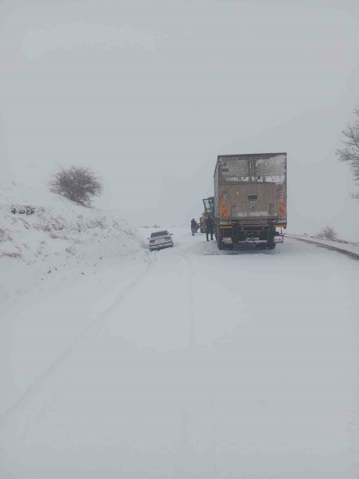 Çorum’un Alaca ilçesinde yoğun kar yağışı sebebiyle araçlarıyla yolda mahsur kalan vatandaşlar, Çorum İl Özel İdaresi ekiplerinin çalışmasıyla kurtarıldı.