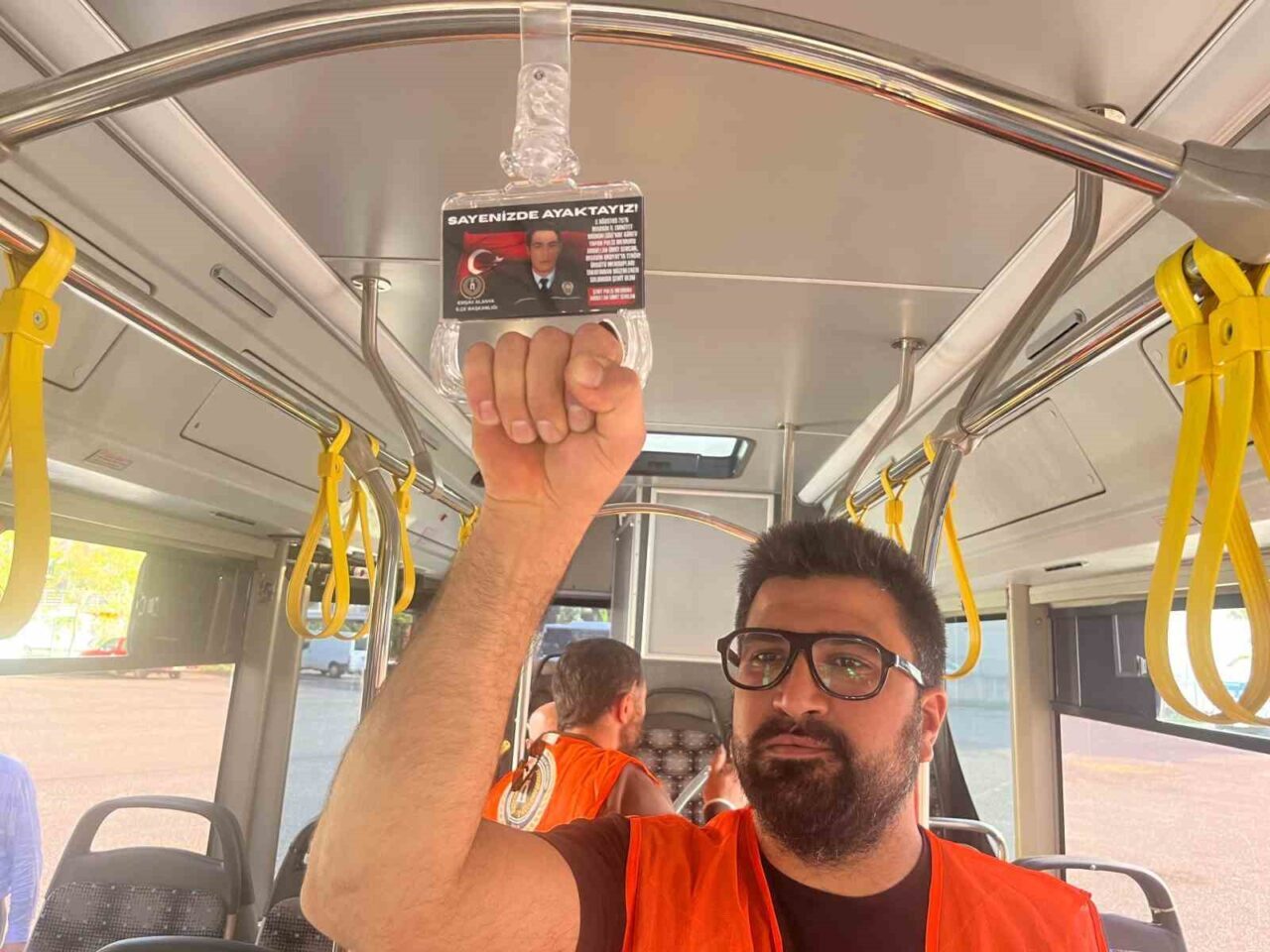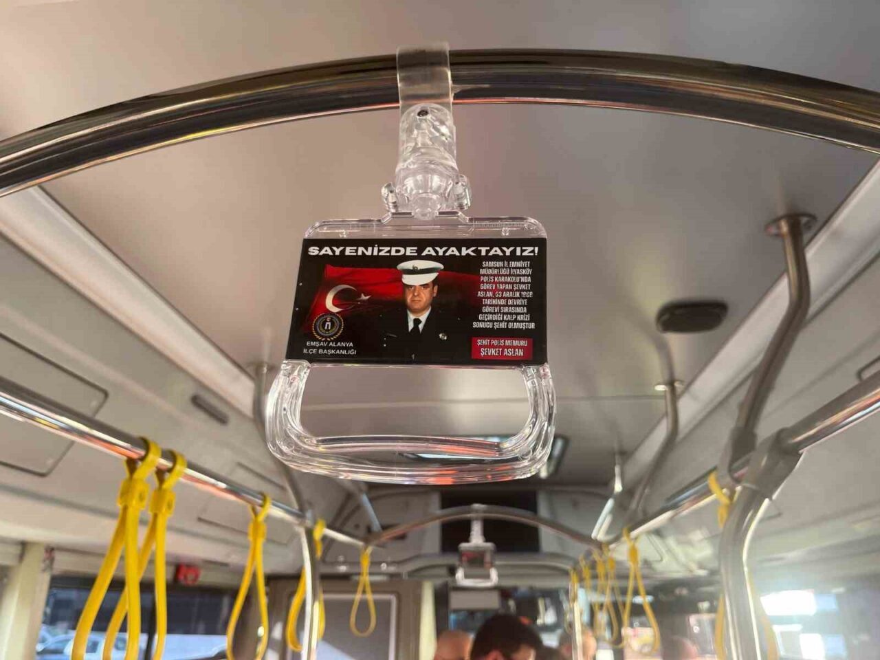 ALANYA’DA EMNİYET TEŞKİLATI VAZİFE MALÜLÜ VE ŞEHİT AİLELERİ VAKFI (EMŞAV) TARAFINDAN ANLAMLI BİR PROJEYE İMZA ATILDI. ALANYALI ŞEHİT OLAN ASKER VE POLİSLERİN FOTOĞRAFLARI İLE BİLGİLERİNİN YER ALDIĞI ÖZEL KARTLAR, HAZIRLANAN GÖRSELLERİN OTOBÜS TUTACAKLARINA BASILMASIYLA ANTALYA BÜYÜKŞEHİR BELEDİYESİ’NE BAĞLI 90 HALK OTOBÜSÜNE TAKILDI.