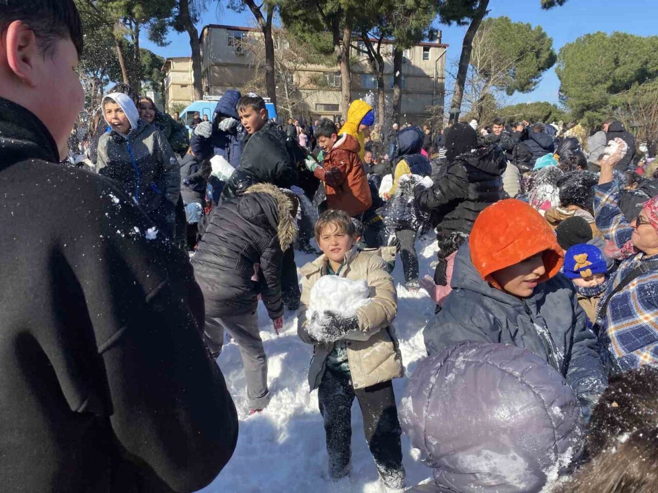 Manisa’nın Alaşehir ilçesinde yarıyıl tatiline giren çocuklar için belediye tarafından kar sürprizi gerçekleştirildi. İlçe merkezine uzun yıllardır kar yağmadığı için karla buluşamayan çocuklar, dağlık alandan getirilen karla doyasıya eğlendi.