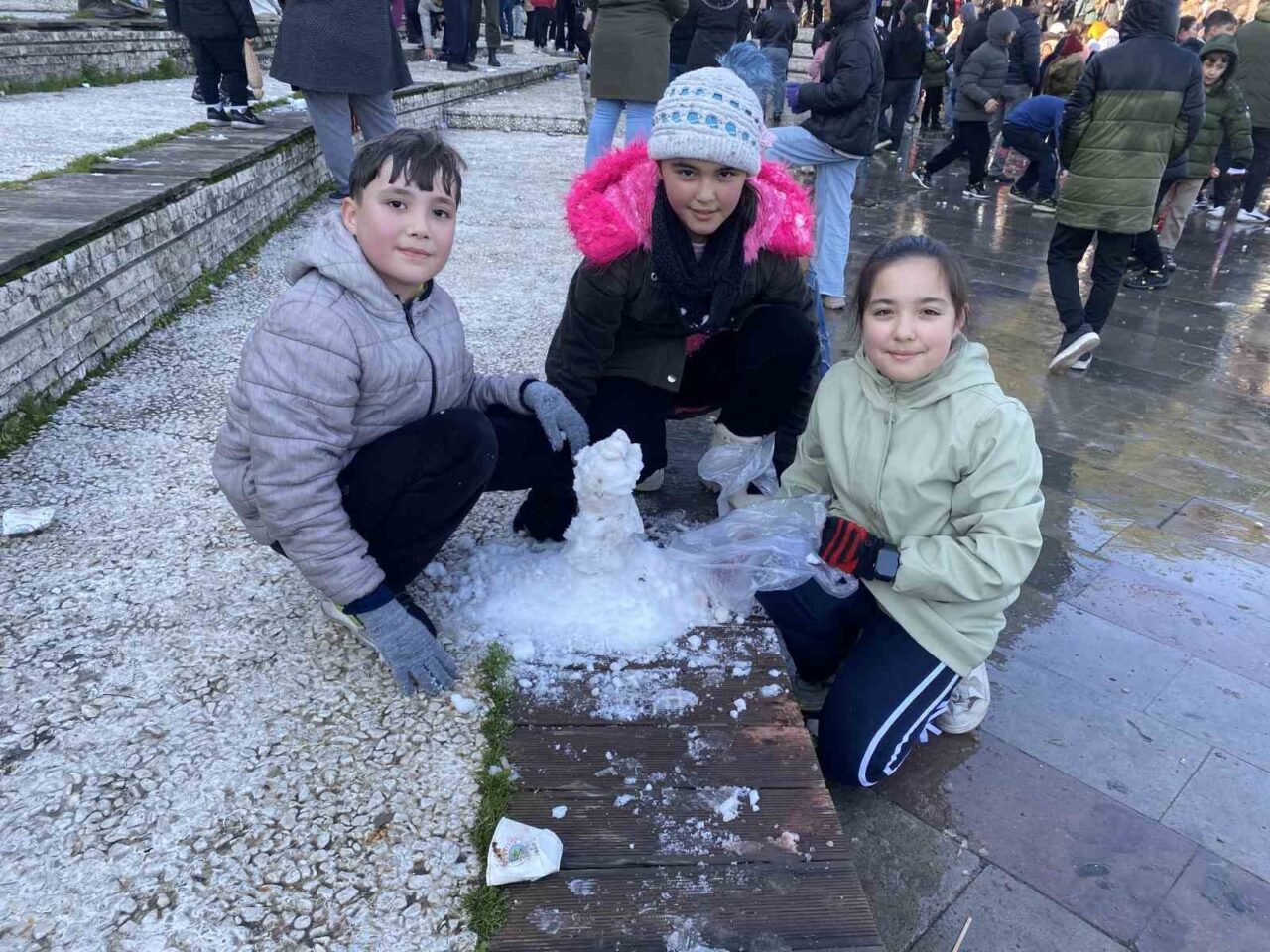 Manisa’nın Alaşehir ilçesinde yarıyıl tatiline giren çocuklara belediyeden kar sürprizi