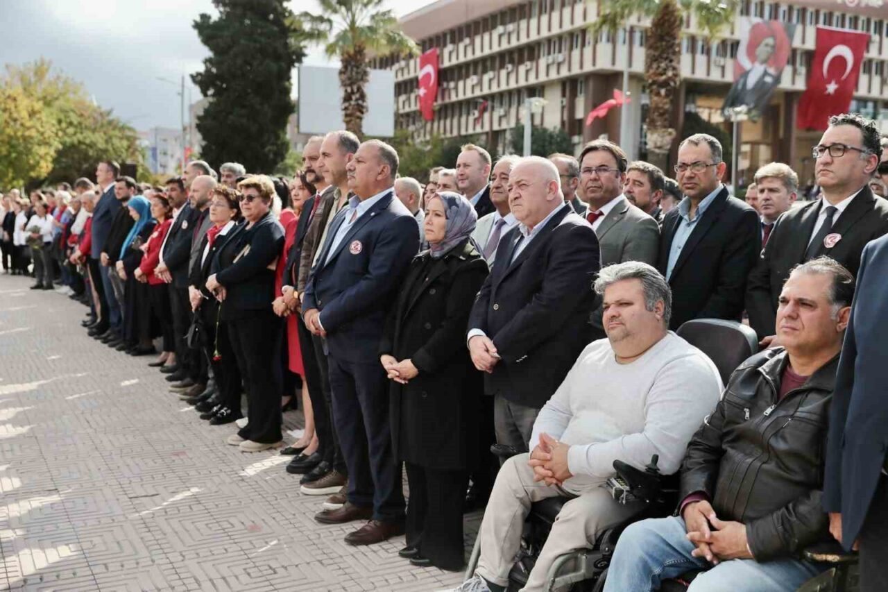 Kutlamalar, 29 Ekim Cumhuriyet Bayramı dolayısıyla Aliağa Cumhuriyet Meydanı’nda, Aliağa Kaymakamlığı’nın organize ettiği çelenk sunum töreniyle başladı. Bu etkinliğe Aliağa Kaymakamı Zekeriya Güney, Aliağa Belediye Başkanı Serkan Acar ve Garnizon Komutanı Albay Ali Güler katılarak Atatürk Anıtı’na çelenk bıraktı. Ayrıca, Aliağa Cumhuriyet Başsavcısı Serkan Başaran, bölgedeki kurum müdürleri, askeri yetkililer, belediye meclis üyeleri, muhtarlar, siyasi partilerin temsilcileri, sivil toplum kuruluşları, şehit aileleri, gaziler, öğretmenler, öğrenciler ve birçok vatandaş da törende yer aldı. Çelenk sunumunun ardından saygı duruşu yapılarak İstiklal Marşı okundu. Törenin sonu, Aliağa Kabristanlığı’ndaki şehitlik ziyaretine dek uzandı.