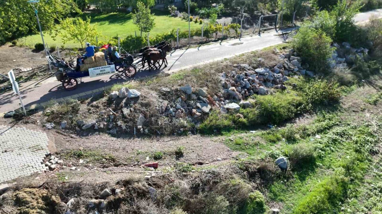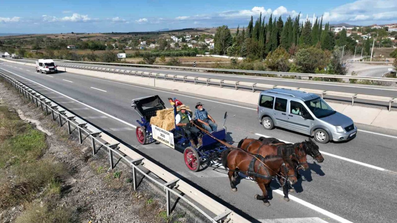 Alman Friedensglocken (Barış Çanları) derneğine bağlı olan bu cesur ekip, Berlin’den başladıkları yolculuklarının 2 bin 300 kilometresini geride bıraktı. Mayıs ayında renkliliklerle dolu bir etkinlik ile uğurlanan grup, Aralık ayının 25’ine kadar Kudüs’te olmayı arzuluyor. Başta İsrail’in Filistin halkına yönelik uyguladığı adaletsizliklere dikkat çekmek amacıyla başlayan bu barış yürüyüşü, çeşitli zorluklarla dolu bir deneyim oldu. Türkiye’ye giriş yapan aktivistler, Bursa’da bir süre dinlendikten sonra sabahın erken saatlerinde yeniden yola koyuldu. At arabalarındaki dikkat çekici mesaj ile sadece dikkatleri üzerlerine çekmekle kalmıyor, aynı zamanda insanların kalplerine de barış tohumları ekmeyi hedefliyor.