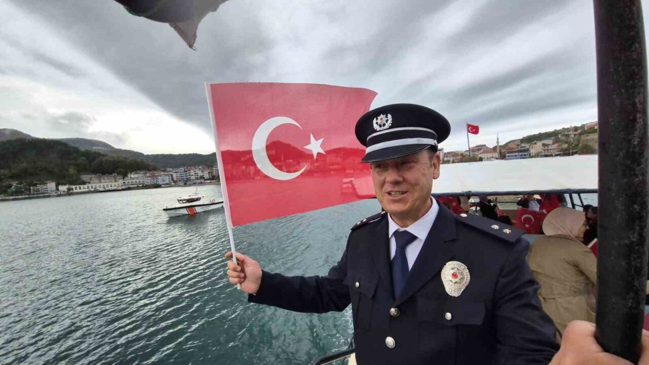 Korna sesleriyle dolan çevre, katılımcıların ellerindeki Türk bayraklarının dalgalanması ile şenlendi. Gerçekleşen tekne turu sırasında, Sahil Güvenlik botları da sirenleriyle tura eşlik ederek büyük ilgi topladı. Coşkulu anların yaşandığı turda, Sahil Güvenlik botunun sergilediği gösteri, yerel halk tarafından büyük bir heyecanla izlendi. Bot, ardışık manevralar yaparak kendi etrafında defalarca döndü ve teknelerdeki katılımcılar ile sahildeki izleyicilerin gurur dolu bakışları eşliğinde gösterisini sürdürdü.