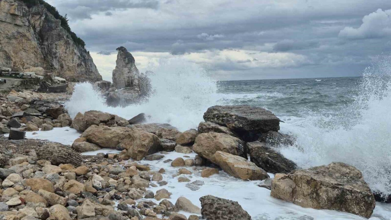 Şiddetli rüzgarın etkisi altında kalan Amasra’da, saatteki hızı 75 kilometreye kadar ulaşan rüzgar, denizde dev dalgaların oluşmasına yol açtı. Rüzgarın yarattığı dalgaların boyu, kayalara çarparken 4 metreye kadar ulaşıyor.