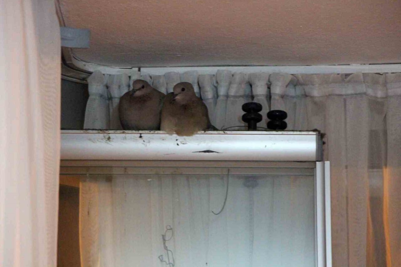 Ekim ayında Üçler Mahallesi’nde bulunan bir binanın 2. katındaki dairenin balkonuna giren kumru çifti, balkon camının üstüne yuva yaptı. Görünce şaşırdıkları misafirlerinin birkaç günlüğüne kalacaklarını düşünen Huma ve Mehmet Eftelioğlu çifti yanıldı. Kumru çifti yaklaşık 4 aydır balkonu mesken tuttu.