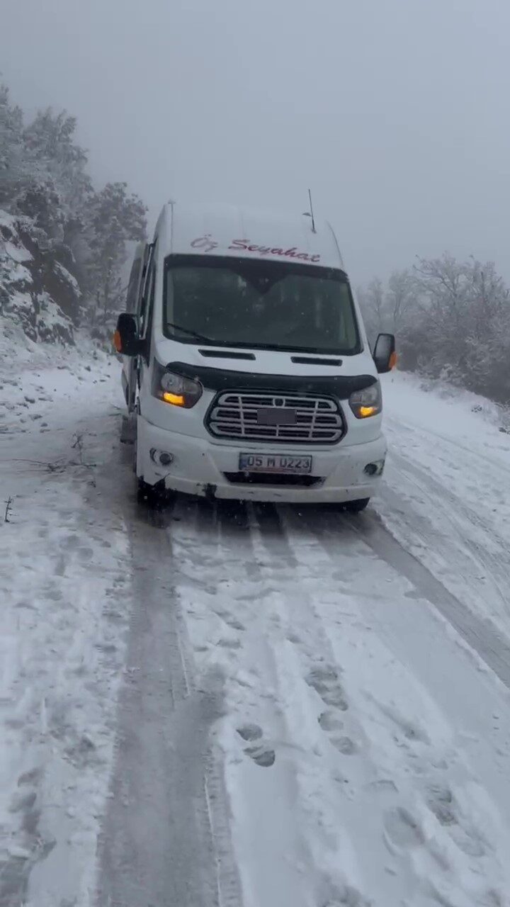 İl merkezinden Yassıçal köyüne doğru yola çıkan minibüs, karla kaplı yolda yokuşta kaldı. Durumun 112 Acil Çağrı Merkezine bildirilmesinin ardından bölgeye AFAD arama-kurtarma ekibi sevk edildi.