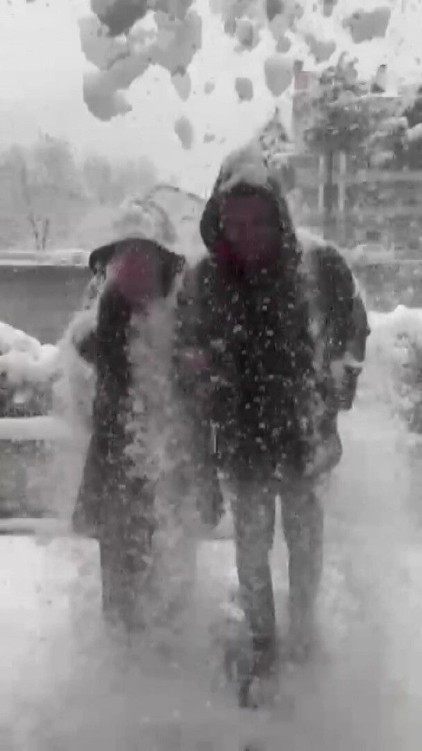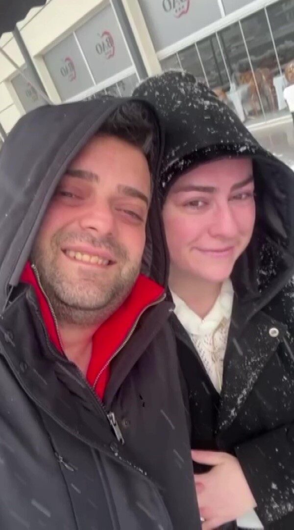 Eşi Numan ile birlikte başlarına gelenleri sosyal medyada paylaşan Gözde Öztürk, “Hatıra olmasını istemiştik. Az miktarda kar döküleceğini bekliyorduk. Ama yoğun kar kütlesi bir anda kafamdan aşağı döküldü. Birden kardan kadın oldum. Kar banyosu yapmış gibi oldum” diye konuştu.