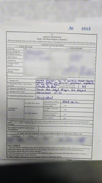 Amasya’da meydana gelen bir olayda, belediyeye ait kapalı otoparktan ücret ödemeden çıkış yapmak isteyen iki servis aracı sahibine toplamda 5 bin 906 TL para cezası kesildi.