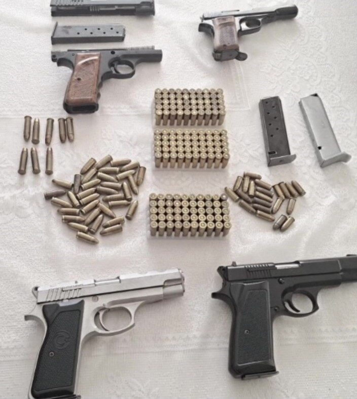 Arama sonucunda, 4 adet ruhsatsız tabanca, 1 adet ruhsatsız av tüfeği, 608 adet fişek, şarjör, kapak takımı, iğne ve kabza gibi çok sayıda silah parçası ele geçirildi. Şüpheliler hakkında silah kaçakçılığı suçlamasıyla adli işlem başlatıldığı bildirildi.