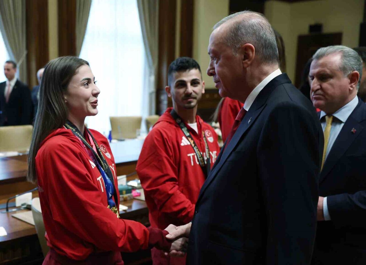 CUMHURBAŞKANI RECEP TAYYİP ERDOĞAN, ÇEŞİTLİ BRANŞLARDAN BAŞARILI SPORCULARI CUMHURBAŞKANLIĞI KÜLLİYESİ’NDE KABUL ETTİ.