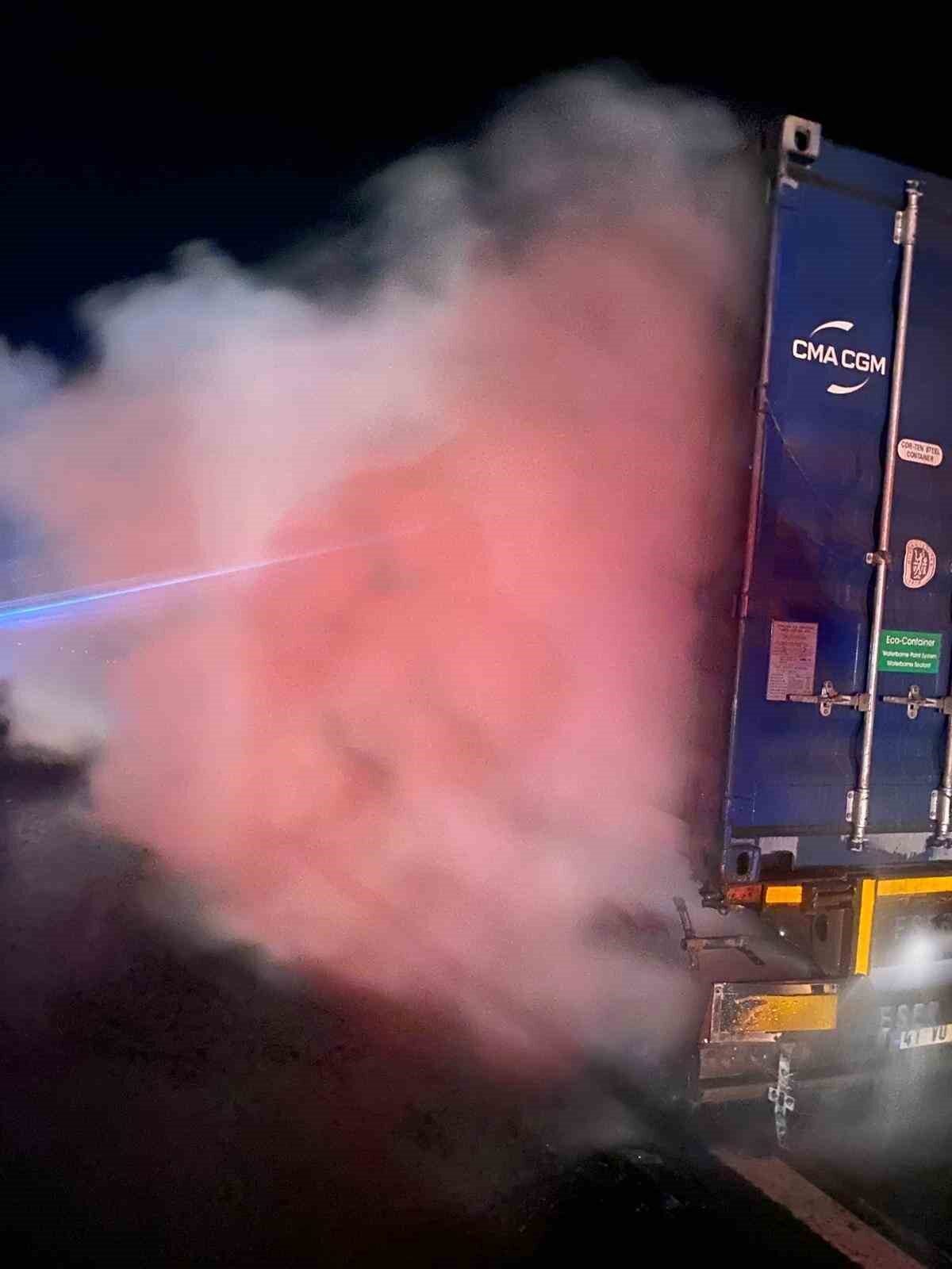 Anadolu Otoyolu Düzce geçişinde balatalarından tutuşan tırdaki yangın itfaiye ekiplerinin müdahalesiyle söndürüldü.