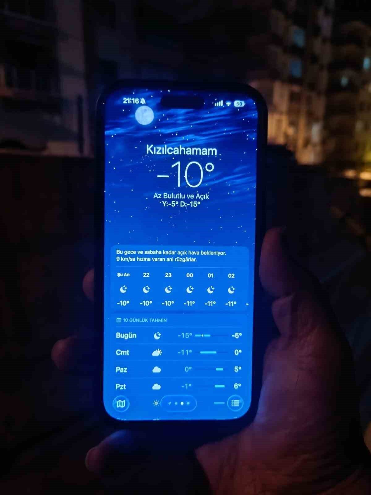 Ankara’da gün boyunca soğuk hava hâkim oldu. Ankara merkezde, bugün termometreler eksi 11 dereceyi kaydetti. Ankara’nın çevre ilçelerinde de soğuk hava etkisini sürdürdü. Nallıhan’da termometreler eksi 18, Çamlıdere’de eksi 12, Çubuk’ta eksi 11, Haymana’da eksi 11, Beypazarı’nda eksi 10, Kahramankazan’da eksi 10, Kızılcahamam’da eksi 10, Sincan’da eksi 9, Elmadağ’da eksi 8, Akyurt’ta ise eksi 8 dereceyi gösterdi. Meteoroloji Genel Müdürlüğü’nden alınan hava tahminlerine göre soğuk hava birkaç gün daha başkentte etkili olmaya devam edecek.