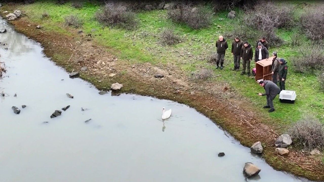 Ankara'da bir evin bahçesine düşen ve güçten düştüğü belirlenen kuğu, tedavi ve rehabilitasyon sürecinin ardından Edirne'deki doğal yaşam alanı olan Gala Gölü'ne salınarak yeniden suyla buluşturuldu.