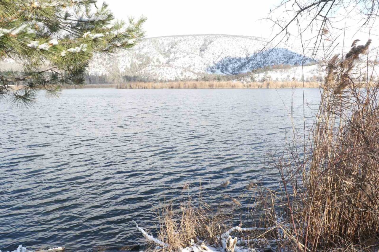 Ankara’da kar yağışı Eymir Gölü’nü beyaza bürüdü