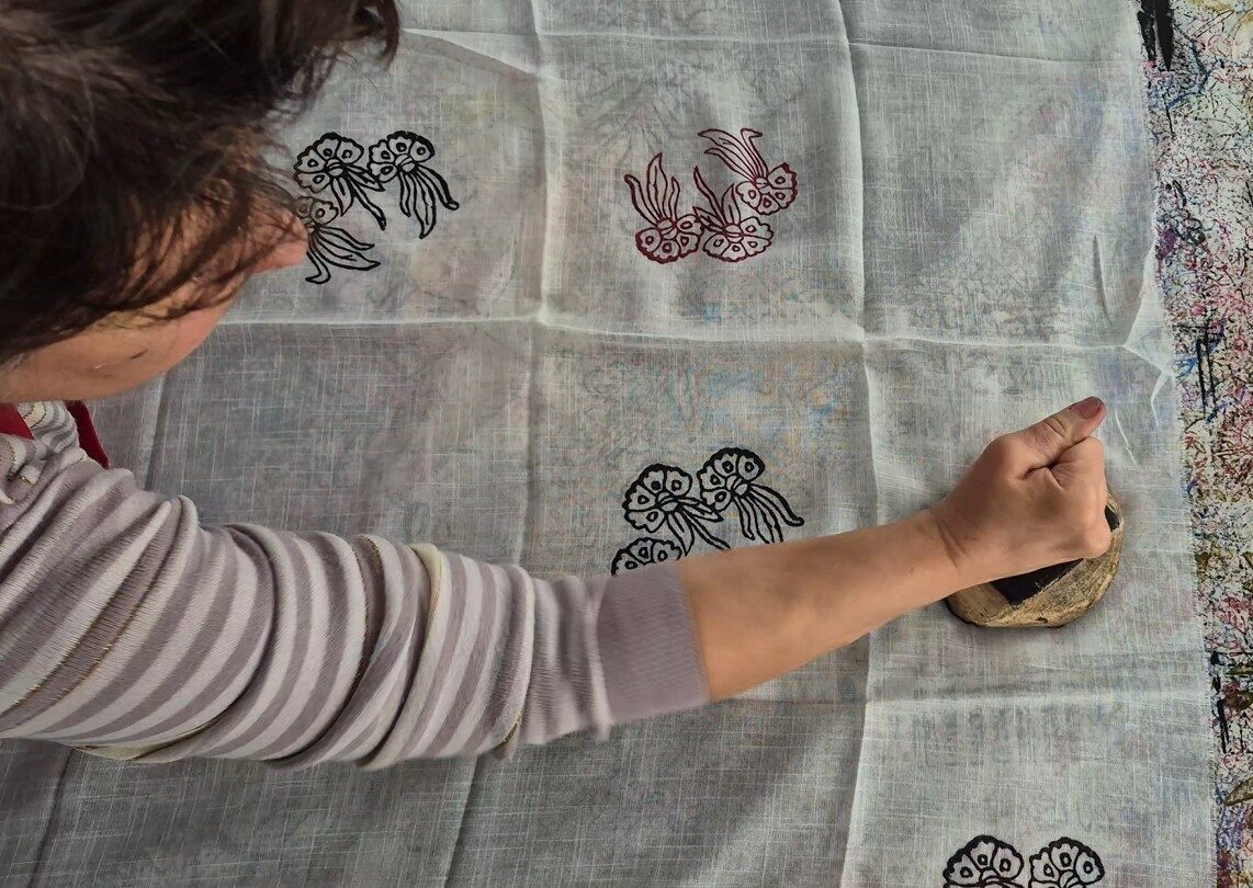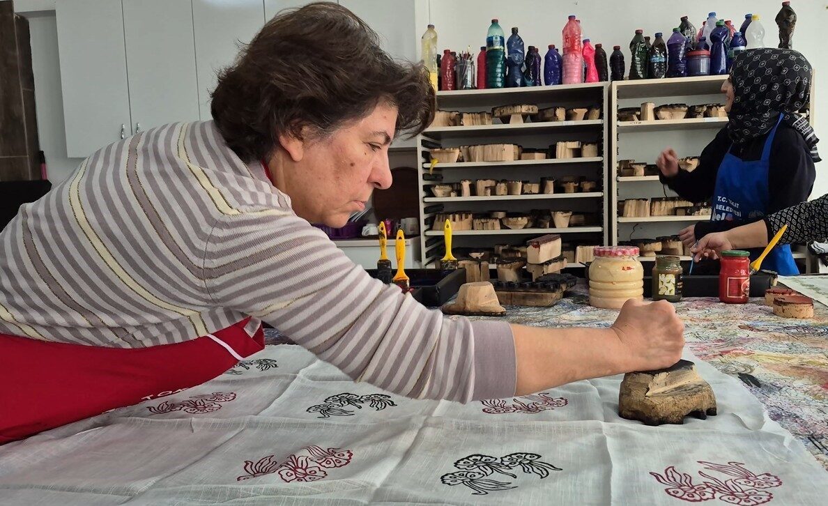 Ankara’daki ebru sanatçısı Adalet Özdürük, Tokat BELMEK kurslarında geleneksel baskı sanatını öğreniyor.