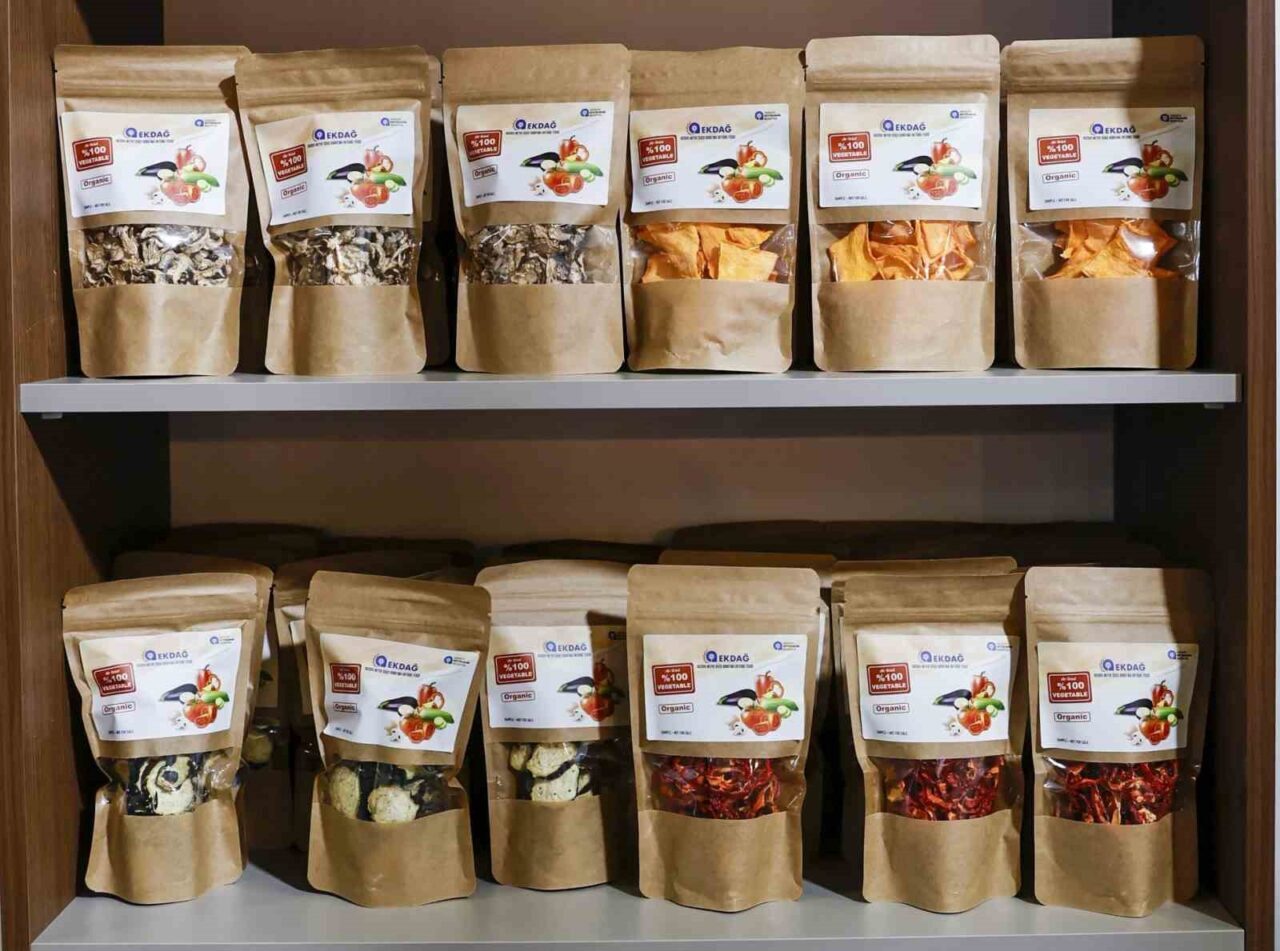 EKDAĞ A.Ş. Genel Müdürü Ahmet Aydın, Korkuteli ilçesi Bozova Mahallesi’nde daha önce soğuk hava tesisi olarak kullanılan ve uzun süre atıl durumda bulunan tesisi yeniden işlevsel hale getirdiklerini ifade etti. Aydın, “Toplam 15 bin metrekare alan üzerine kurulu olan tesisimizin 3 bin 500 metrekaresi kapalı alandan oluşuyor. Air Dried teknolojisi ile güneş ısısı yöntemiyle kuruttuğumuz ürünleri bu tesisimizde üretiyor ve sergiliyoruz. Güneş panelleri aracılığıyla elde ettiğimiz ısıyı tesis içerisinde depoluyor, bu ısıyla meyve ve sebzelerimizi kurutuyoruz. Güneş ısısının yetersiz kaldığı akşam saatlerinde ise pelet desteğiyle üretimi sürdürmeye devam ediyoruz. Tesisimizin ortalama 7,5 ton yaş meyve işleme kapasitesi bulunuyor. Güneş ısısıyla doğal yöntemlerle kurutma yaptığımız tesisimizde saatte bin paketleme kapasitesine sahibiz. Bu yöntemin diğer kurutma tekniklerinden en önemli farkı, ürünlerin besin değerinde hiçbir kayıp yaşanmaması ve katkı maddesi içermemesidir” dedi.