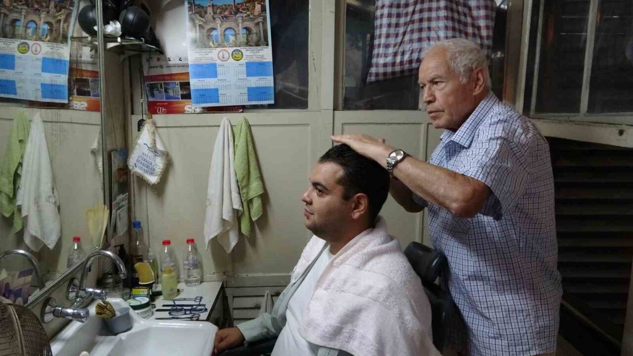 Antalya’nın merkezinde, tarihi Zincirli Han’ın içinde yalnızca 5 metrekarelik bir alanda hizmet veren 75 yaşındaki berber Vedat Çakıl, 45 yıldır aynı dükkanda tıraş gerçekleştiriyor.