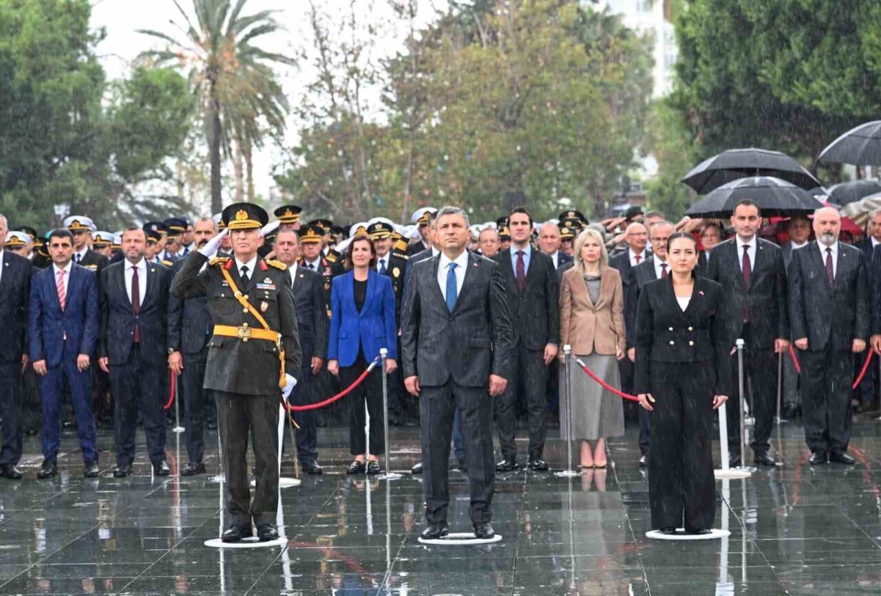 Antalya Valisi Hulusi Şahin, Büyükşehir Belediyesi Başkan Vekili Büşra Özdemir ve Garnizon Komutanı Tümgeneral Sinan Eren, çelenklerini sunduktan sonra etkinlik, saygı duruşu ve İstiklal Marşı’nın okunması ile tamamlandı.