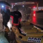 Sarı kod ile uyarılan Antalya’da dün gece başlayan ve birçok bölgede etkili olan şiddetli yağış, sabah saatlerine kadar sürdü. Yağış nedeniyle yollar adeta göle dönerken, araç ve evlerinde mahsur kalan vatandaşlar AFAD ekipleri tarafından botla kurtarıldı.