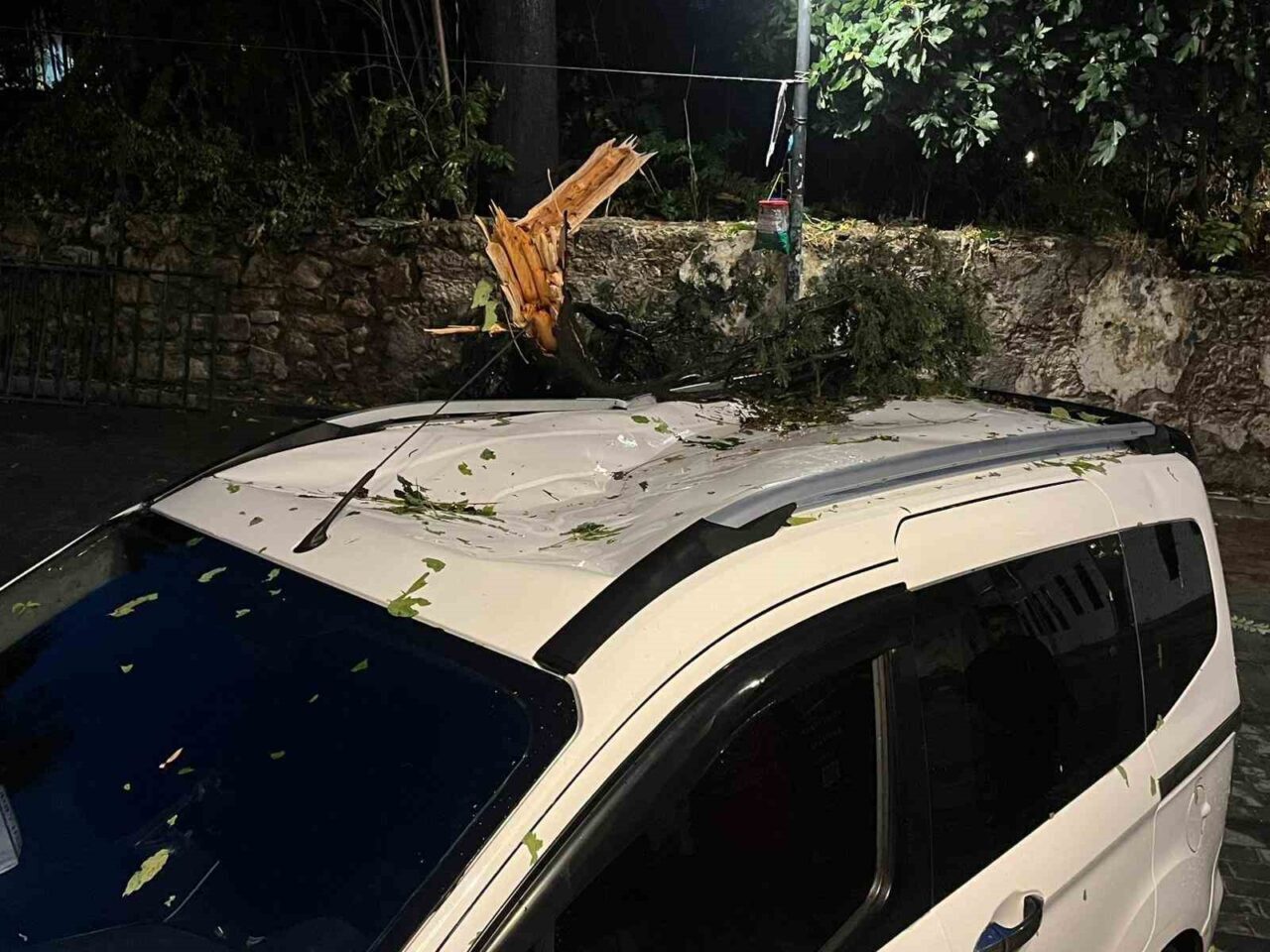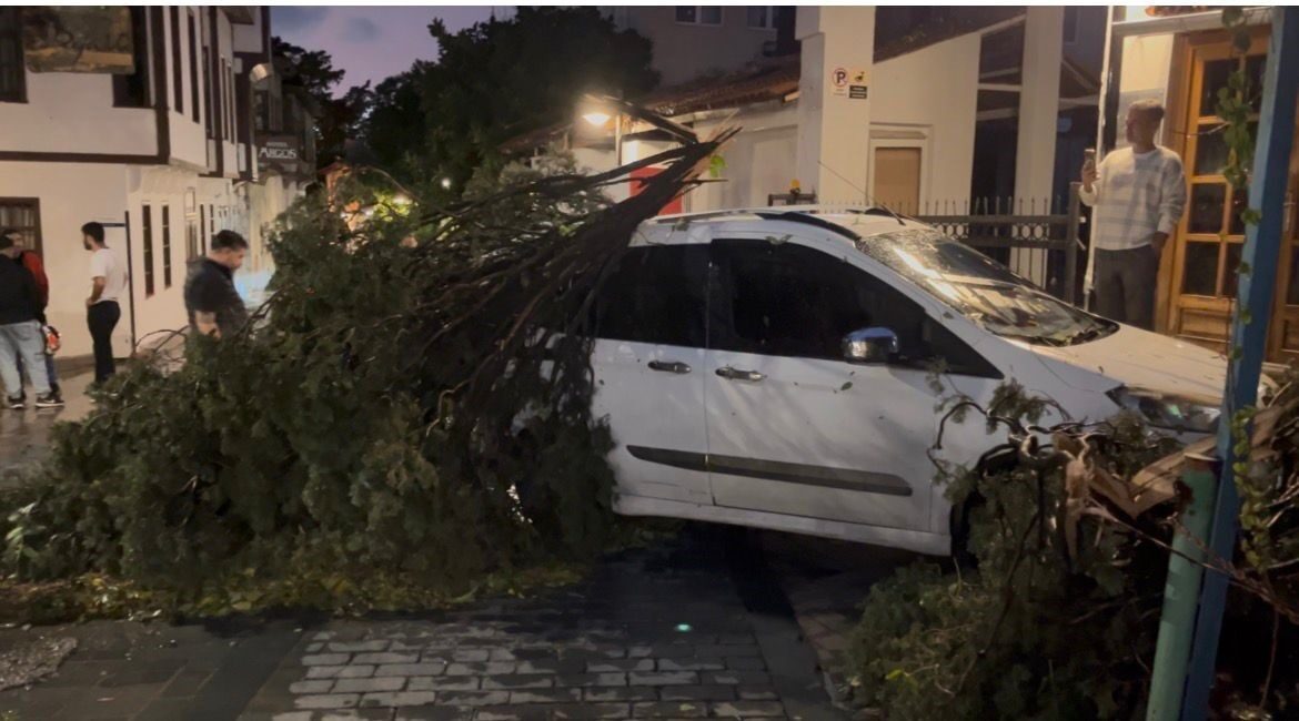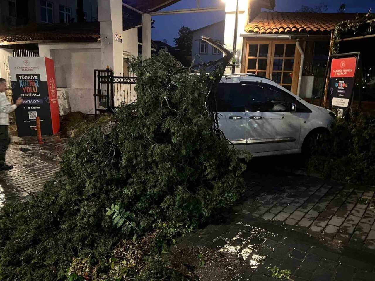 Antalya’da Fırtına, Araç Üzerine Devrilen Ağaçla Zarar Verdi