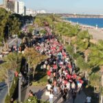 Antalya’da, Gazze’deki acımasız saldırılara dikkat çekmek için geniş katılımlı bir yürüyüş gerçekleştirildi. Yürüyüşe, sayıları binleri bulan katılımcılar, motosiklet grupları ve teknelerle destek vererek etkinliğe iştirak etti.