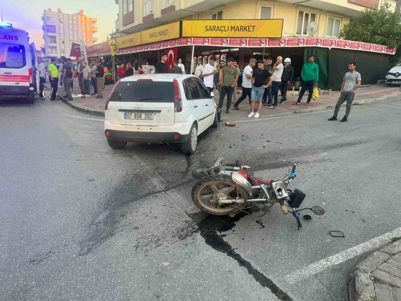 Kaza, Manavgat’taki Remzi Güven Caddesi üzerinde, Bayır Mezarlığı yönünde gerçekleşti. Edinilen bilgilere göre, Abdulhadı A. isimli yabancı uyruklu sürücü, plakasız motosikleti ile kavşakta Hüsnü O. yönetimindeki 07 BSR 392 plakalı otomobile çarptı ve yaralandı. İhbar gelmesinin ardından bölgeye sağlık ve polis ekipleri sevk edildi. Sağlık ekipleri, yaralı sürücüye olay yerinde ilk müdahaleyi yaparak, hastaneye sevk etti.