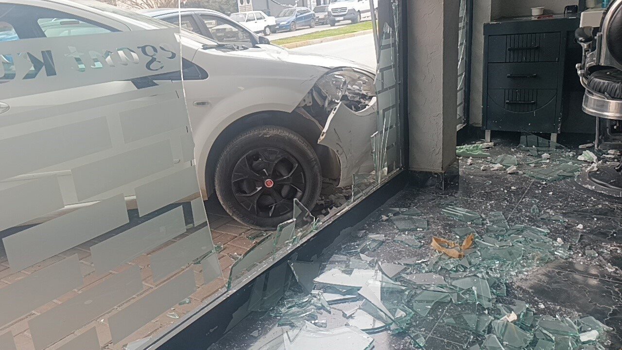 Antalya’da kontrolden çıkan otomobil, cadde üzerindeki erkek kuaförü dükkanına daldı. Büyük paniğin yaşandığı kazada tıraş olan kuaför ve kalfa patlayan vitrin camlarından kaçarken, o esnada koltukta oturan müşteri ise olduğu yerde donakaldı. Bir süre sonra koltuktan kalkan müşterinin yaptığı ilk iş olayın fotoğrafını çekmek oldu.