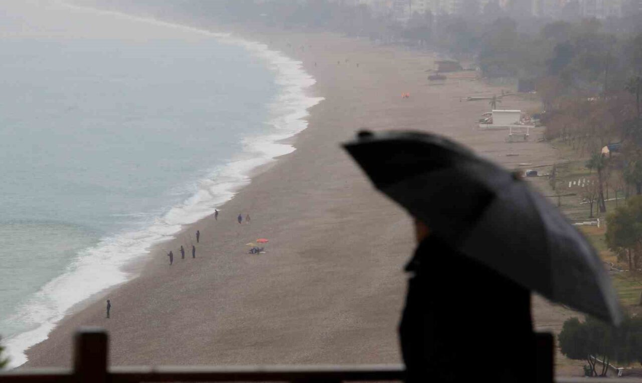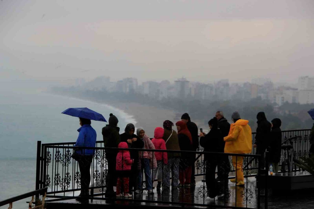Antalya’da 3 gündür etkisini sürdüren sağanak yağış azalırken vatandaşlar sahile akın etti