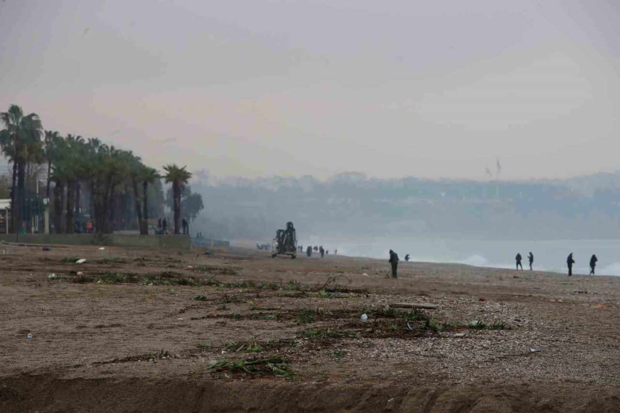 Antalya’da 3 gündür devam eden sağanak yağışın şiddeti azalırken, vatandaşların sahile akın ettiği gözlemlendi. Fırtınanın etkisiyle çöpler sahile vururken, bazı yollar da çökme olayı yaşandığı bildirildi.