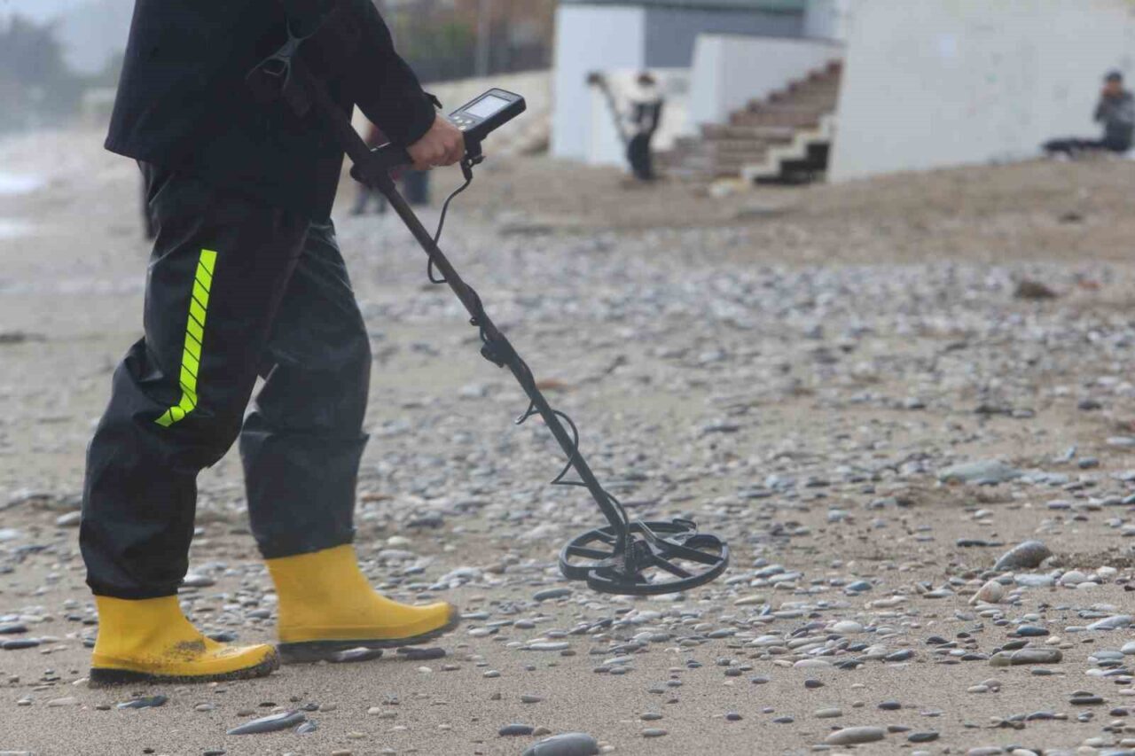 Antalya’da rüzgar hayatı olumsuz etkiledi, define avcıları sahile inerek arama yaptı