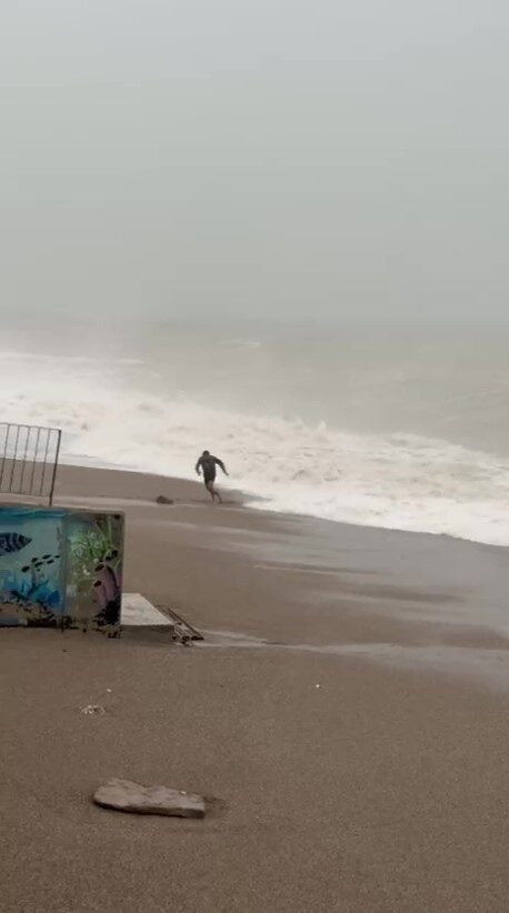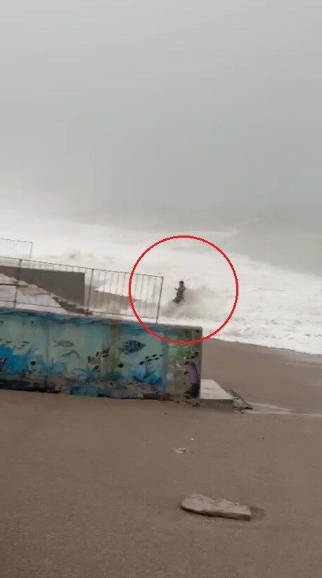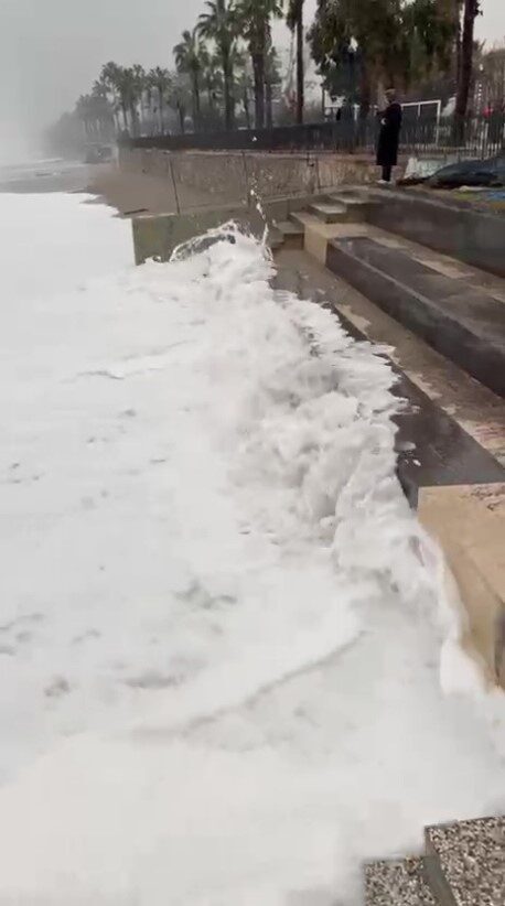 Meteoroloji 4. Bölge Müdürlüğü’nün Sarı Kod ile uyardığı Antalya’da, şiddetli rüzgarın etkisiyle denizde meydana gelen dev dalgalar, Konyaaltı Sahili’ni dövdü. Deniz suyu, bazı noktalarda sahil bandına kadar ulaştı. Yağışa aldırış etmeyen bazı vatandaşlar, Konyaaltı Sahili’nde denizi ve oluşan dalgaları izlemeye koyuldular. Bazı vatandaşlar, sahil bandına vuran dalgaları cep telefonu kameralarıyla kaydetti. Konyaaltı Sahili’nde zaman zaman yüksekliği 2 metreyi aşan dalgaların arasında video çekmek isteyen bir vatandaş zor anlar yaşadı. Paçalarını sıvayarak sahile inen vatandaş, aniden üzerine doğru gelen kuvvetli dalgayı görünce panikleyerek koşmaya başladı. O anlar, bir başka vatandaşın cep telefonu kamerasına yansıdı. Sahile inen vatandaş ise dalgaların arasında kalmaktan, kıyıdaki bir merdivene tutunarak son anda kurtuldu.