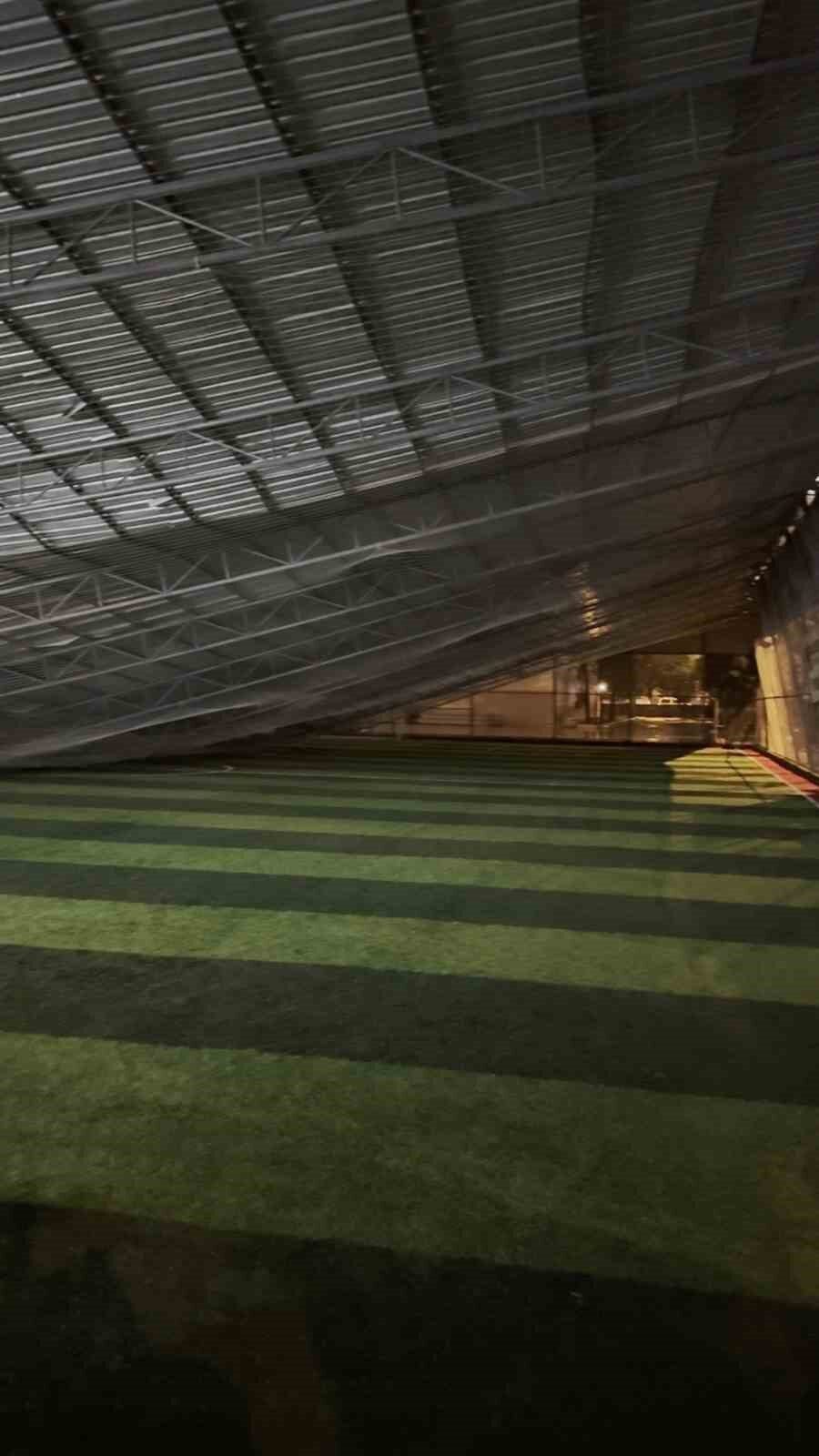 Kepez bölgesinde ise Gündoğdu Mahallesi’nde bulunan bir halı sahanın çatısı, maç oynandığı sırada kuvvetli rüzgara dayanamayarak çöktü.