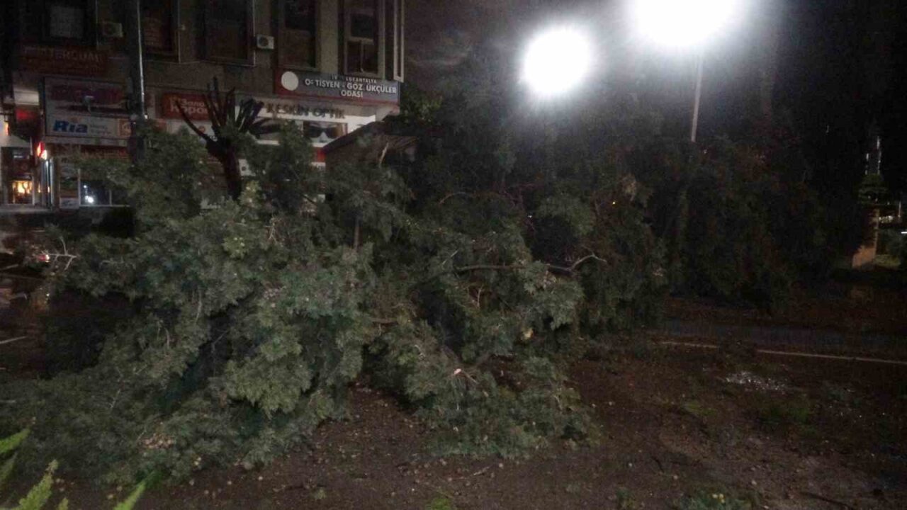 Olayda yaralanan olmadığı öğrenildi. Cumhuriyet Meydanı’nda ise valilik binası önünde bulunan yaklaşık 20 metrelik çam ağacının yola devrildiği bilgisi alındı. Devrilen ağaç nedeniyle yol araç trafiğine kapatıldı.