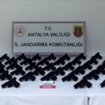 Antalya İl Jandarma Komutanlığınca yürütülen çalışmalar çerçevesinde, Serik Cumhuriyet Başsavcılığı’nın talimatları doğrultusunda silah kaçakçılığı yaptığı tespit edilen şüphelilere yönelik bir operasyon düzenlendi. Ekipler tarafından yapılan takip ve araştırmalar sonucunda, Serik ilçesinde ateşli silahlarla işlenen bazı olaylarda kullanılan tabancaların ticaretini gerçekleştirdiği belirlenen bir şüpheliye ait araç durduruldu. Araçta yapılan aramada 45 adet Glock marka 9 mm ruhsatsız tabanca ile 45 adet tabanca şarjörü ele geçirildi. Şüpheli gözaltına alınırken, olayla ilgili adli tahkikatın devam ettiği bildirildi.