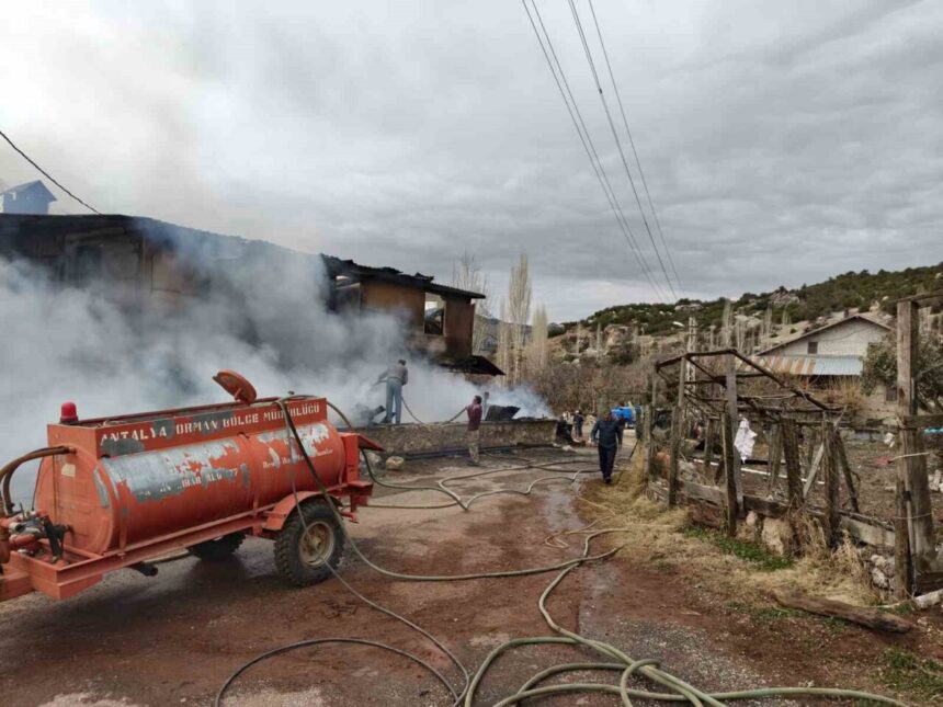Antalya’nın Gündoğmuş ilçesinde bir evde çıkan yangında 3 büyükbaş hayvan telef oldu, dumandan etkilenen 1 kişi hastaneye kaldırıldı.