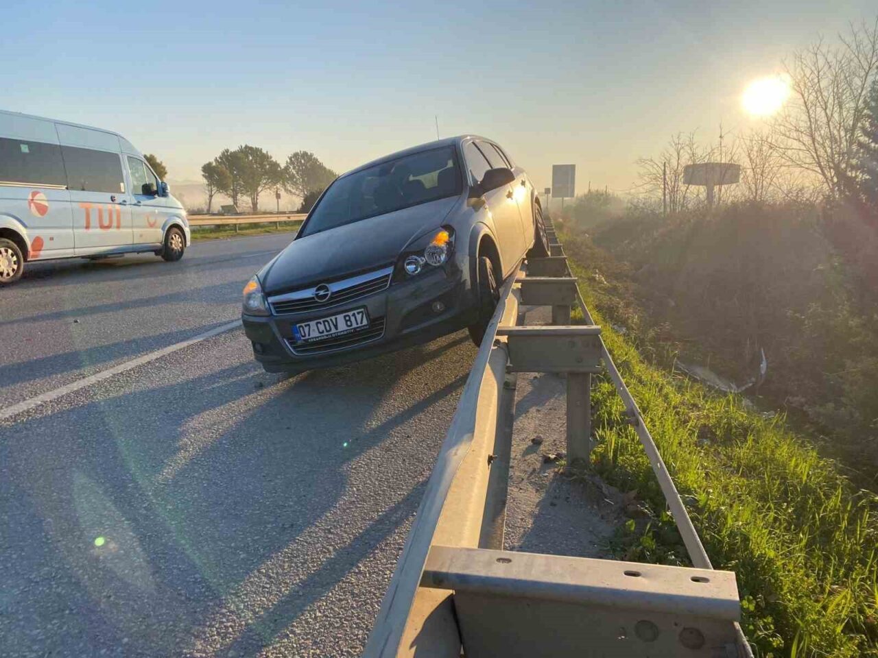 Antalya’nın Serik ilçesinde iki otomobilin karıştığı kazada, araç demir bariyerin üzerinde kaldı. Şans eseri kimsenin yaralanmadığı kaza anı güvenlik kamerası tarafından anbean kaydedildi.