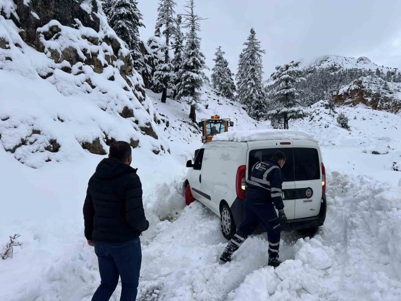 Kar yağışının etkili olduğu Akseki ilçesinde, yayla yolunda kar ve buzlanmadan dolayı mahsur kalan vatandaşlar kurtarıldı. İhbar üzerine yola çıkan Antalya Büyükşehir Belediyesi Yol Yapım, Bakım ve Onarım Dairesi Başkanlığı Akseki Ekipleri, Alacabel Mevkii Sülek Yayla yolunda kar ve buzlanma nedeniyle mahsur kalan 4 vatandaşa ulaştı. Büyükşehir Belediyesi ekipleri, yol açma çalışması yaparak araçları bulunduğu yerden kurtardı. Yoğun kar yağışı ve tipi nedeniyle araçlarının mahsur kaldığını ve yardım istediklerini belirten vatandaşlar, Antalya Büyükşehir Belediyesi ve kurtarma ekibine teşekkür etti.