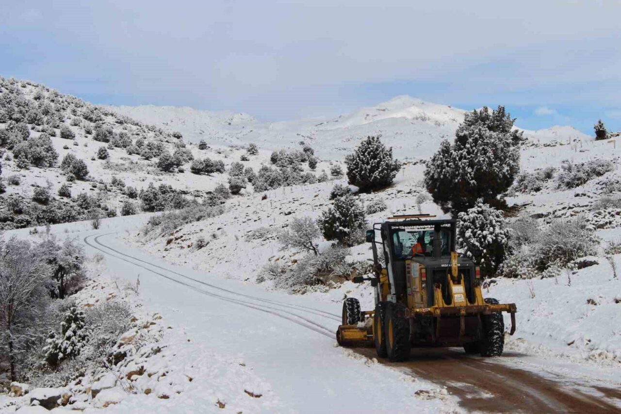 Antalya’nın yüksek kesimleri karla kaplandı. Yoğun kar yağışı sonrası görsel olarak seyri doyumsuz manzaralar oluşurken, ulaşımda yer yer aksamalar yaşanıyor. Antalya Büyükşehir Belediyesi Yol Yapım, Bakım ve Onarım Dairesi Başkanlığı ekipleri, kırsal yollarda heyelanla ve karla mücadele ediyor.