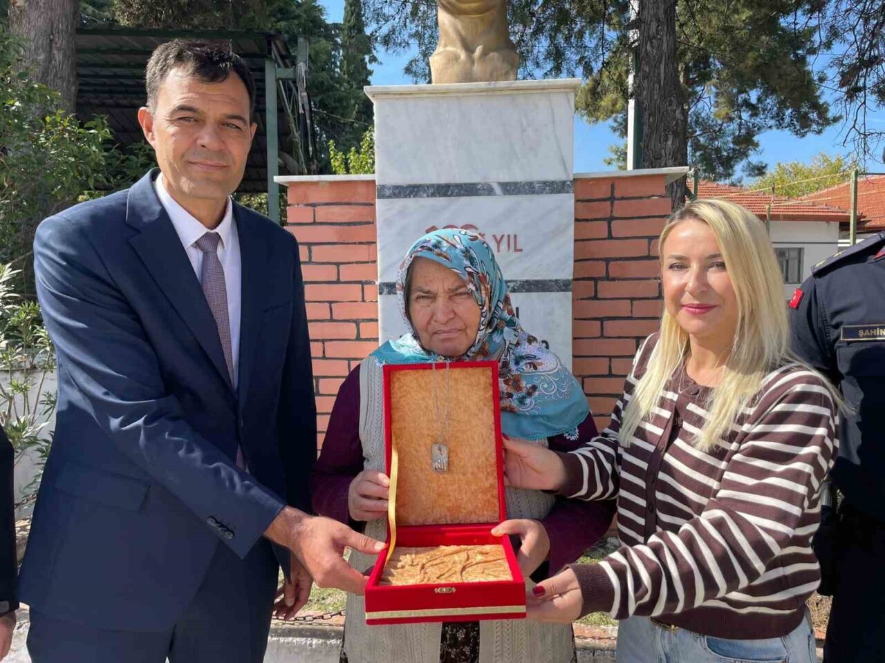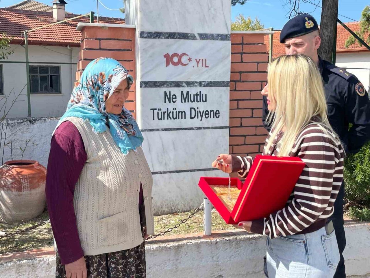 KÖY MEYDANINDA GERÇEKLEŞTİRİLEN TESLİM TÖRENİNDE, YILLAR ÖNCE KAYBOLAN ASKERİ KÜNYE DÜRDANE TOP’A TESLİM EDİLDİ.