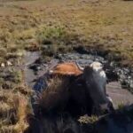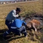 Ardahan’ın Hanak ilçesinde bataklığa düşen bir büyükbaş hayvan, Aras Edaş ekipleri tarafından kurtarıldı.