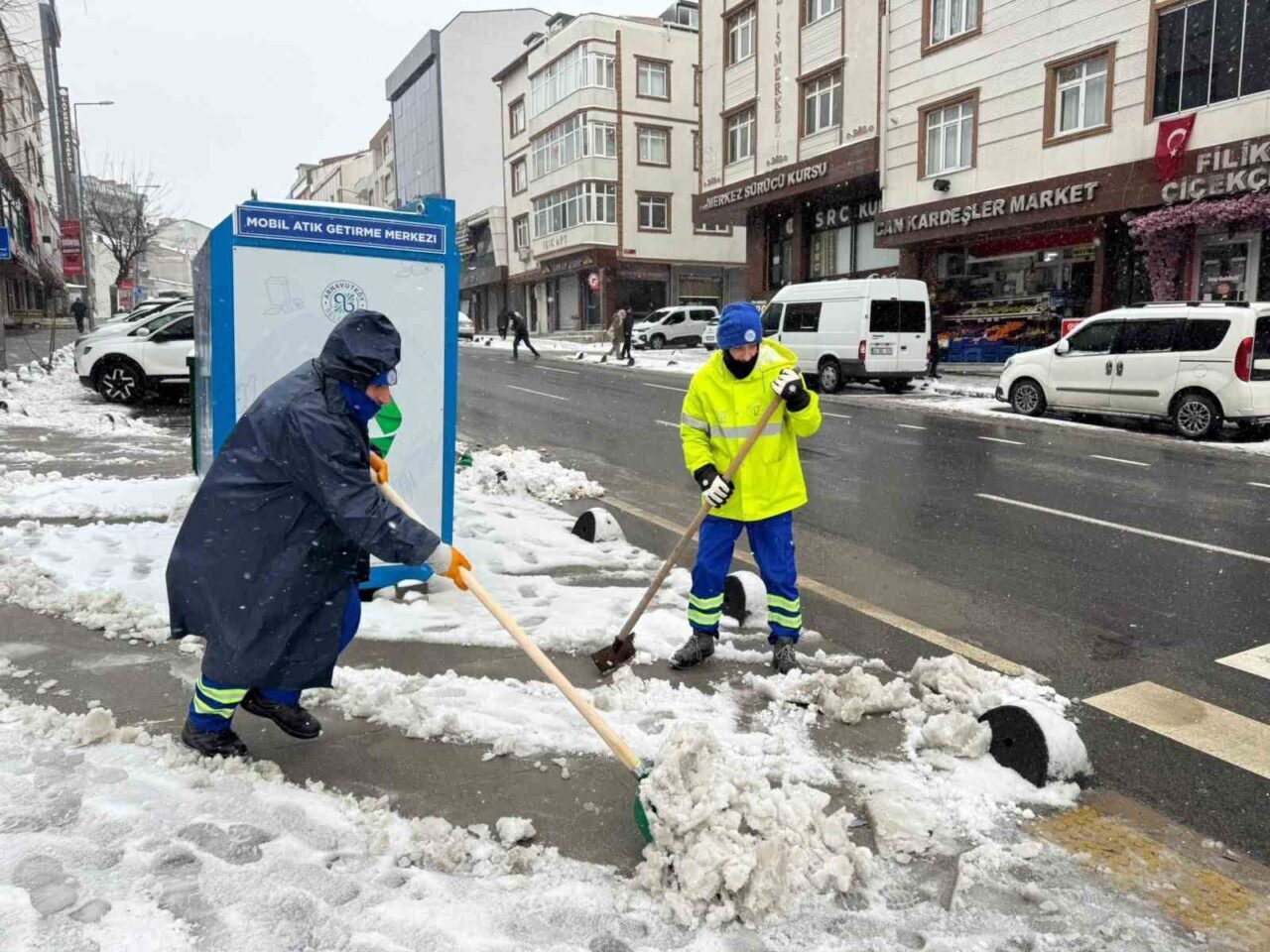 Arnavutköy Belediyesi, soğuk hava koşullarında da vatandaşların yanında olmayı sürdürüyor. Arnavutköy Devlet Hastanesi ve ilçe genelindeki meydanlarda gün boyu devam eden sıcak çorba ikramları, karla mücadele çalışmalarına eşlik ederek vatandaşlara moral ve destek sağladı. Karla mücadele çalışmaları kapsamında yalnızca ana ve ara arterler değil, yaya kaldırımları ve meydanlar da düzenli olarak temizlenerek güvenli hale getiriliyor. Özellikle okul önleri, duraklar ve yoğun kullanılan alanlarda çalışmalar yoğunlaştırılıyor. Buzlanmaya karşı ilçenin farklı noktalarında bulunan tuz depolarında toplam 7 bin ton yol tuzu hazır bulunduruluyor. Stratejik konumlandırılan depolar sayesinde ekipler, özellikle ana ve ara arterlerde hızlı ve etkin müdahale gerçekleştiriyor. Arnavutköy Belediyesi ekipleri, kar yağışının etkisini artırması ihtimaline karşı tüm hazırlıklarını tamamladı. Ana arterler, ara arterler, hastane yolları, toplu taşıma güzergâhları, meydanlar ve yaya yollarında kar küreme ve tuzlama çalışmaları düzenli olarak sürdürülüyor.