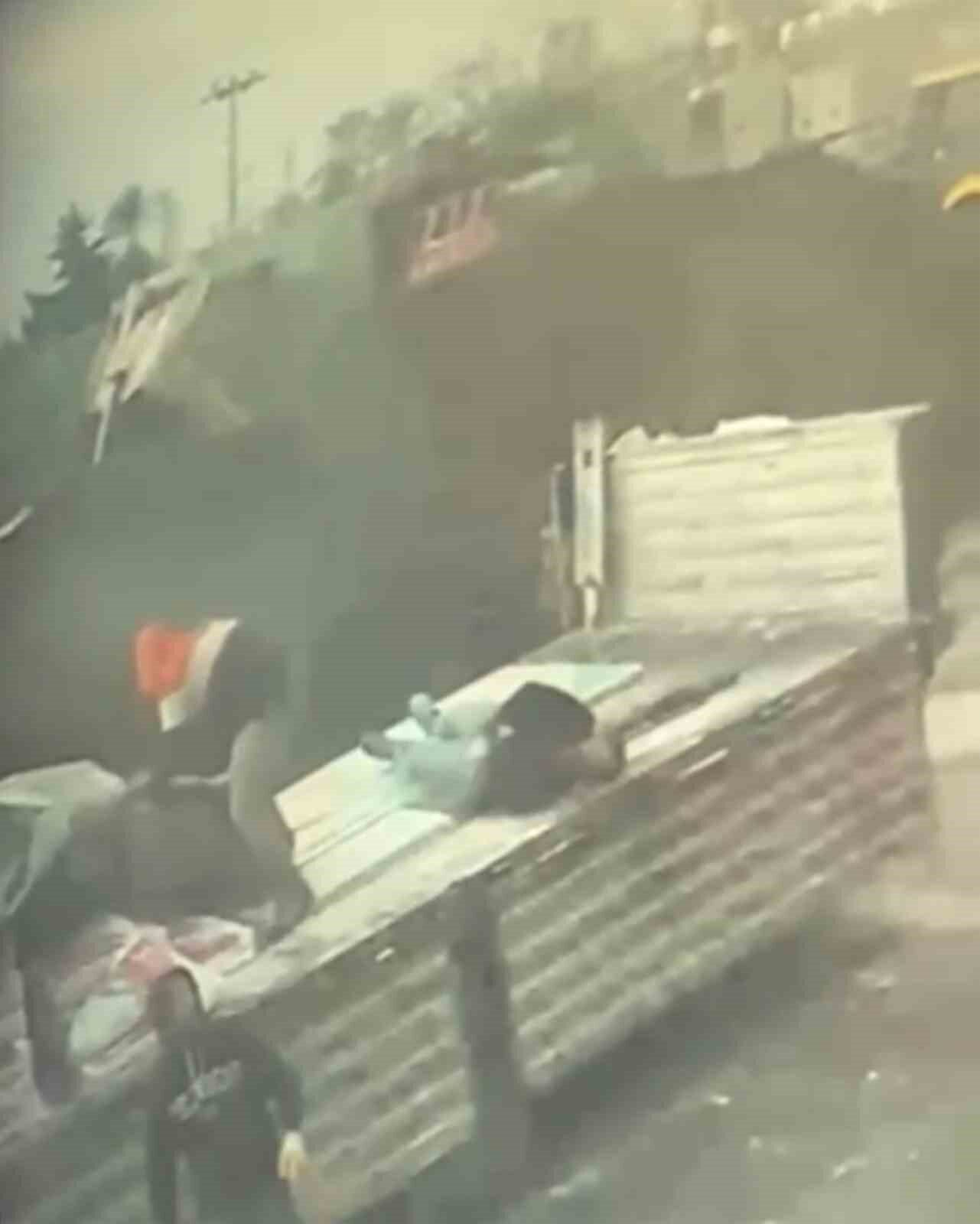 Diğer yandan yıldırımın düştüğü anlar, iş yerinin güvenlik kamerasınca saniye saniye kaydedildi.