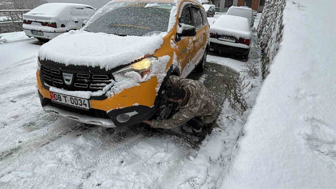 Artvin’de sabah saatlerinde başlayan kar yağışı, günlük yaşamı olumsuz yönde etkiledi. Kent merkezi başta olmak üzere il genelinde caddeler kısa süre içerisinde beyaza bürünürken, bazı sürücüler kar yağışına hazırlıksız yakalandı.