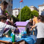 Ekip, öğrencilere hayvanlarla etkileşimlerini artırmak amacıyla okullara iki adet kedi kulübesi ve kuş evi hediye etti. Etkinlikte, minikler renkli boyalar kullanarak kulübe ve kuş evlerinin üzerine el izlerini bırakarak keyifli anlar yaşadı. Boyama etkinliği, çeşitli renk ve görüntülerin ortaya çıkmasına neden oldu.