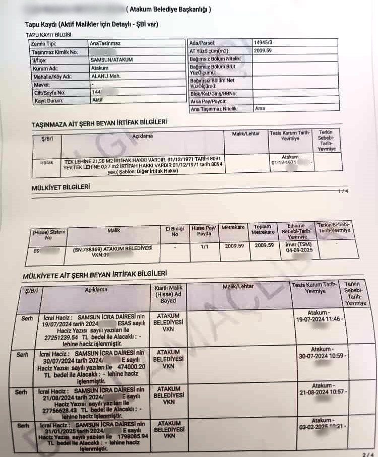 Toplantıda, Alanlı Mahallesi’nde yer alan 2009 metrekarelik taşınmazın satış yetkisi konusunu içeren bir teklif de değerlendirildi. AK Partili meclis üyeleri, üzerinde icra hacizleri bulunan bu arsanın satış nedenlerini sordular. Belediye bürokratları, hacizlerin kaldırılmasının ardından satış işlemleri için meclis onayının şart olduğunu aktardılar.